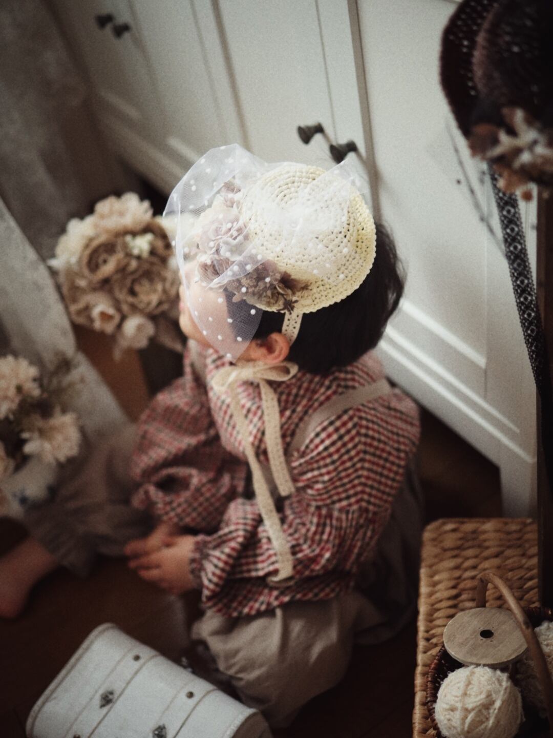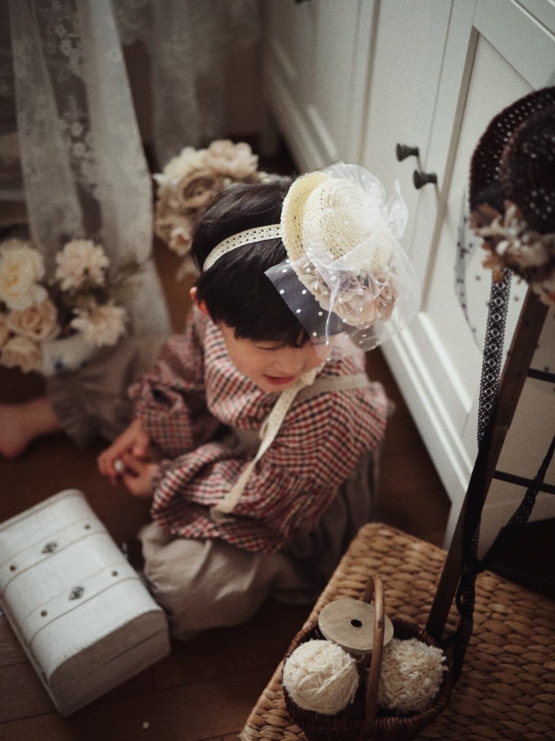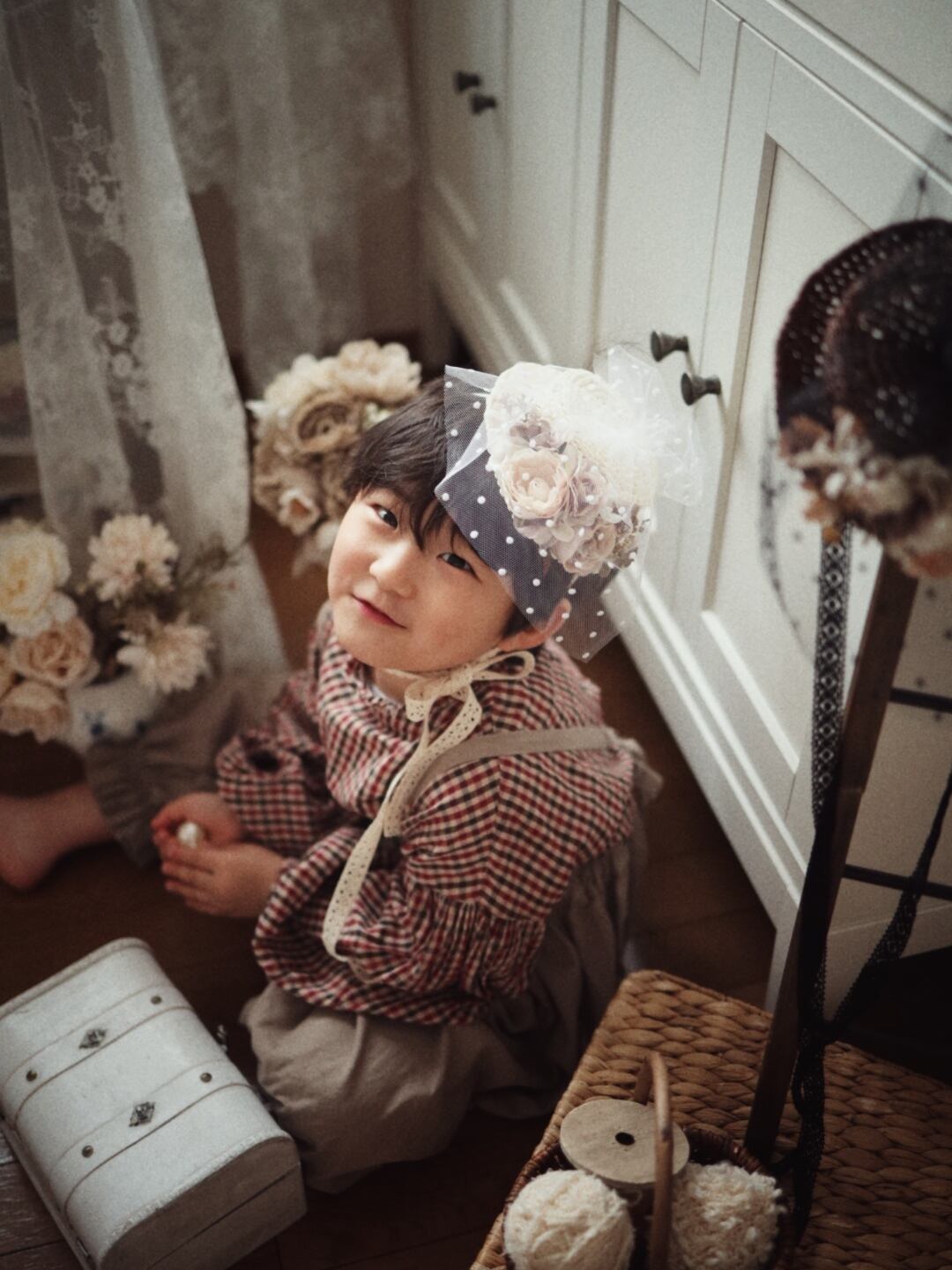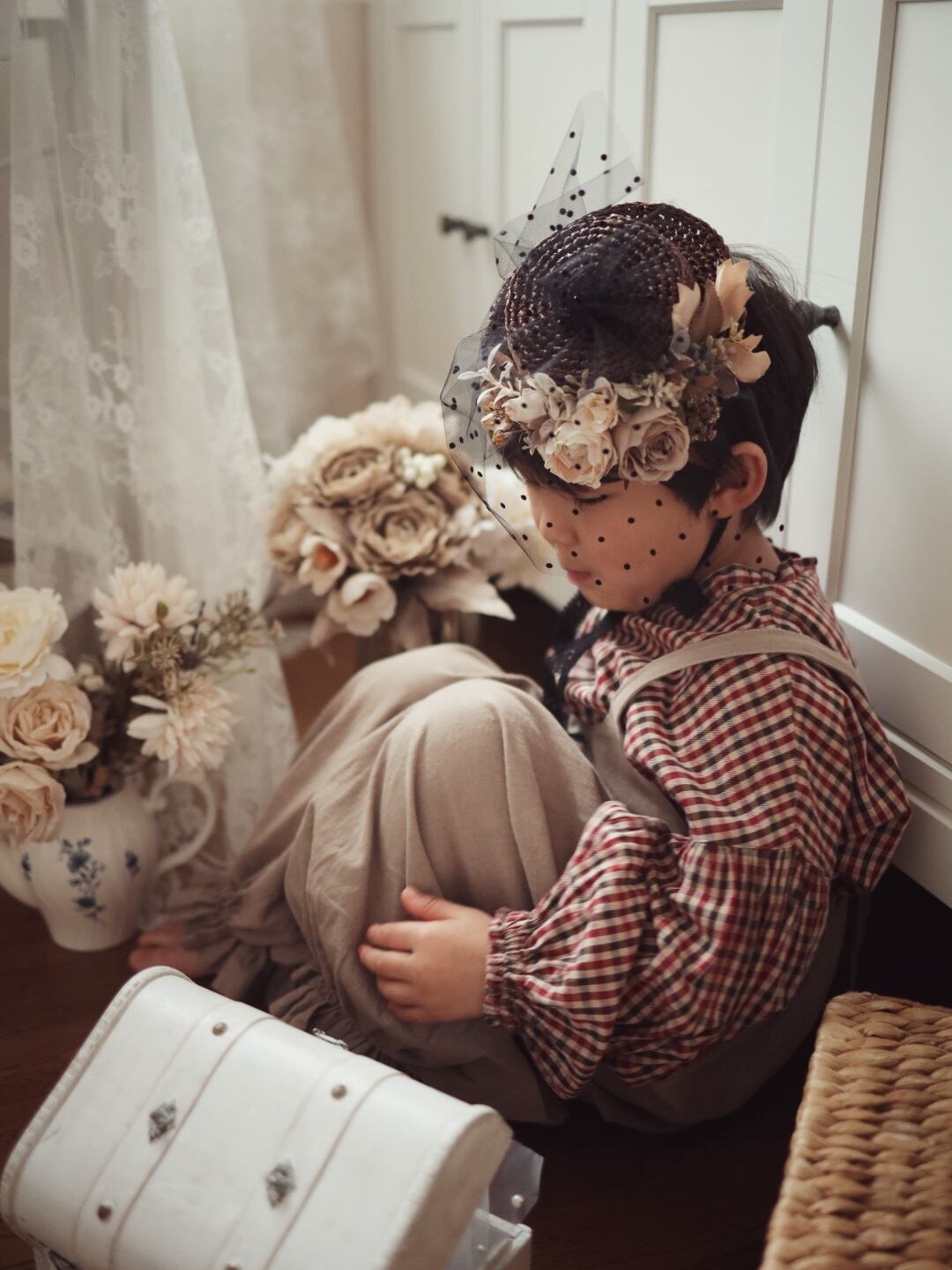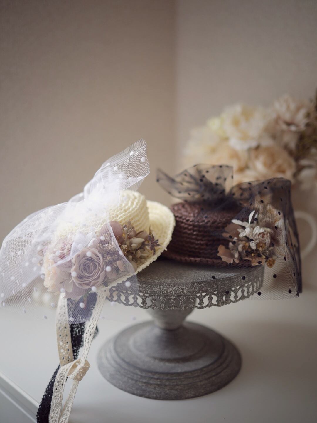 アンティークな雰囲気のフラワーハット