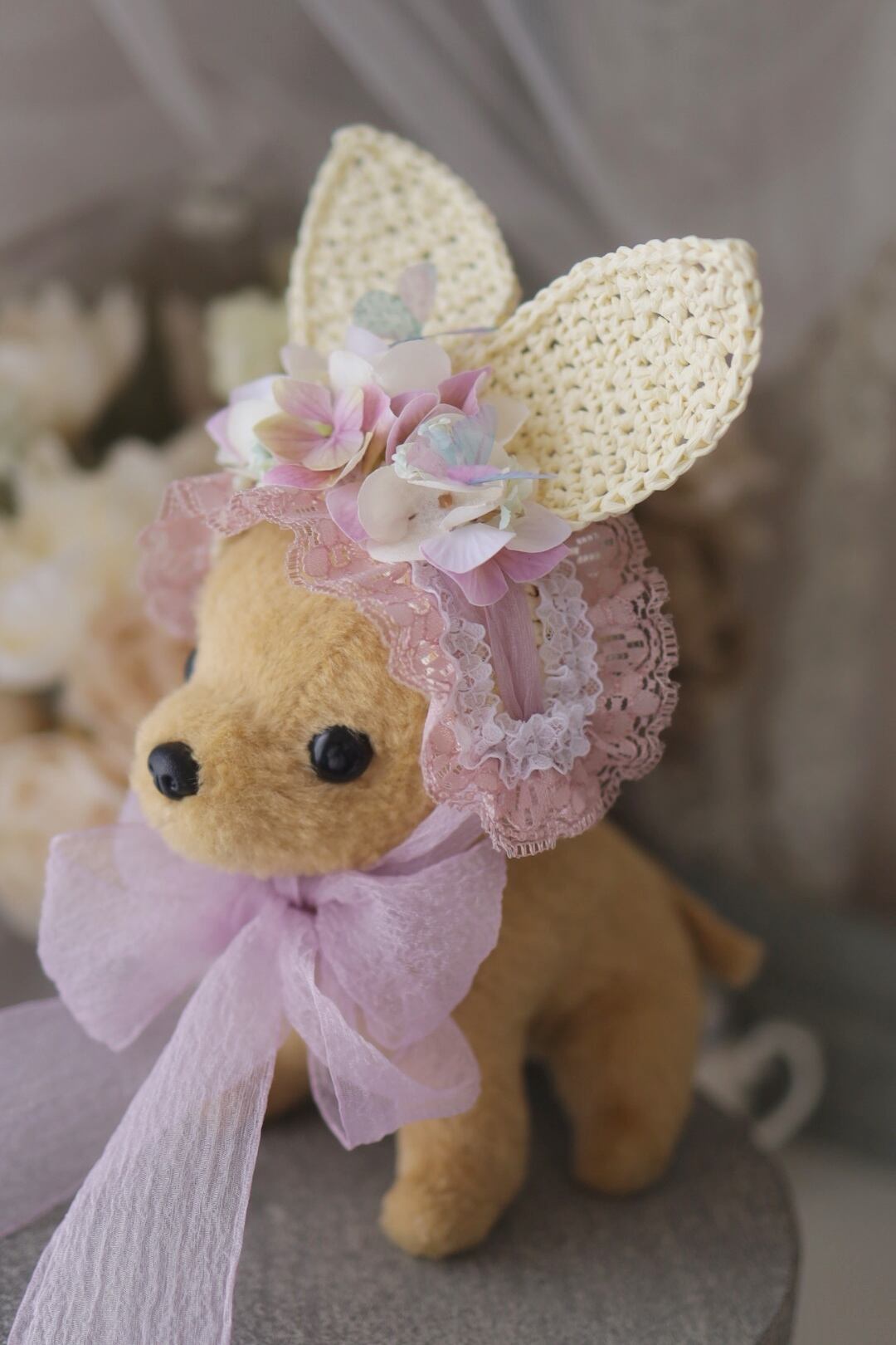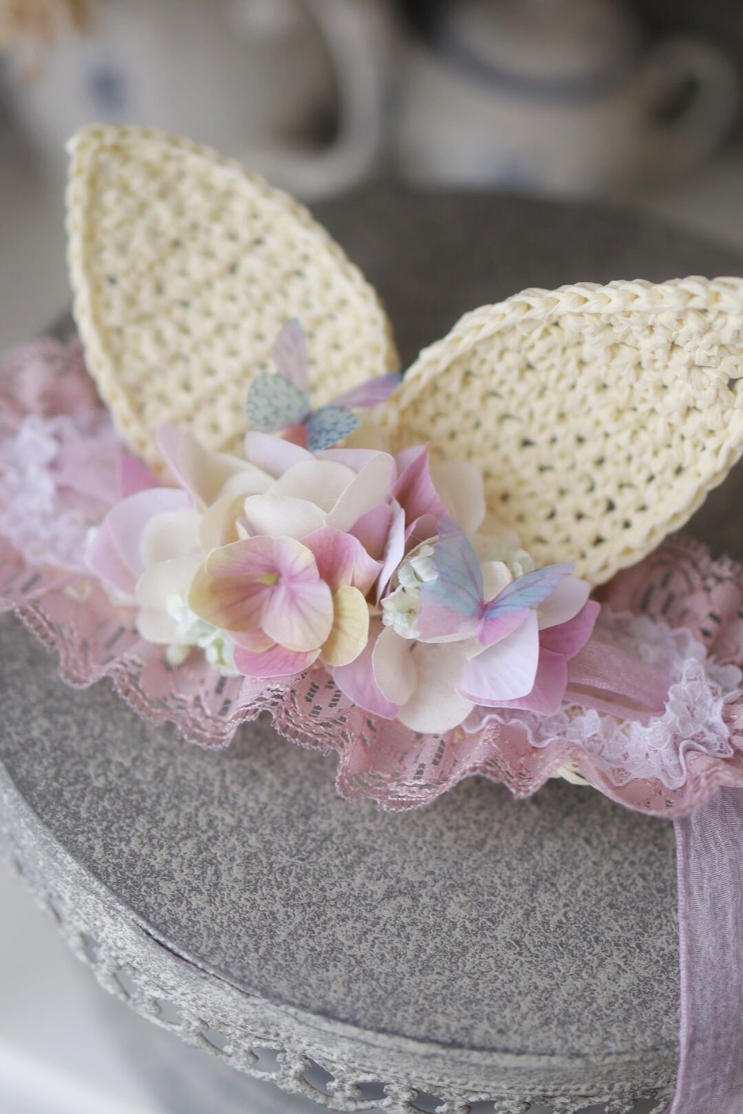うさ耳ボンネ:コットンラフィア